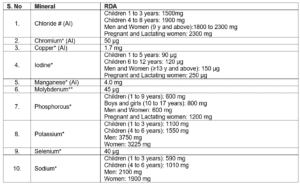 Summary of Recommended Dietary Allowance (RDA) for Energy. Protein, Fat and Minerals for Indians -2010