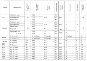 Ref: ICMR Nutrient requirements and RDA for Indians - A report of the Expert Group of the ICMR, 2010